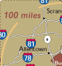 I-95 enters just north of Yardley; Rt. 1 at Morrisville; Rt. 202 just north of New Hope; Rt. 611 at Riegelsville through the county or to Rt. 32 along the eastern border of the county. The Northeast Extension of the Pennsylvania Turnpike crosses the county just northwest of Quakertown with an exit for Rt. 663 N. Rt. 309 runs between Allentown and Philadelphia into Bucks County through Montgomery County. I-78 provides several entries to Bucks County, including Exit 15 (Clinton, NJ) to Rt. 513 to Rt. 32.