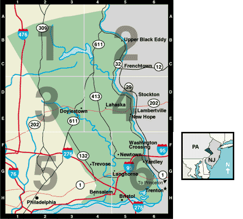 Bucks County is represented as the green area on both the main map here and the inset map showing PA and NJ below.Zone 2 Map